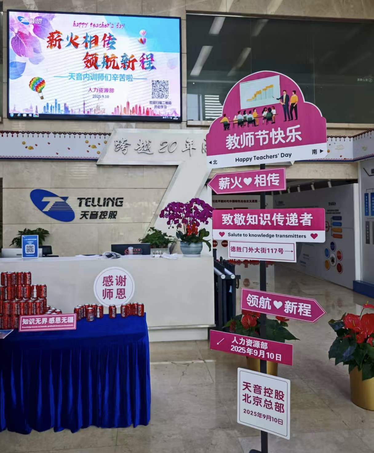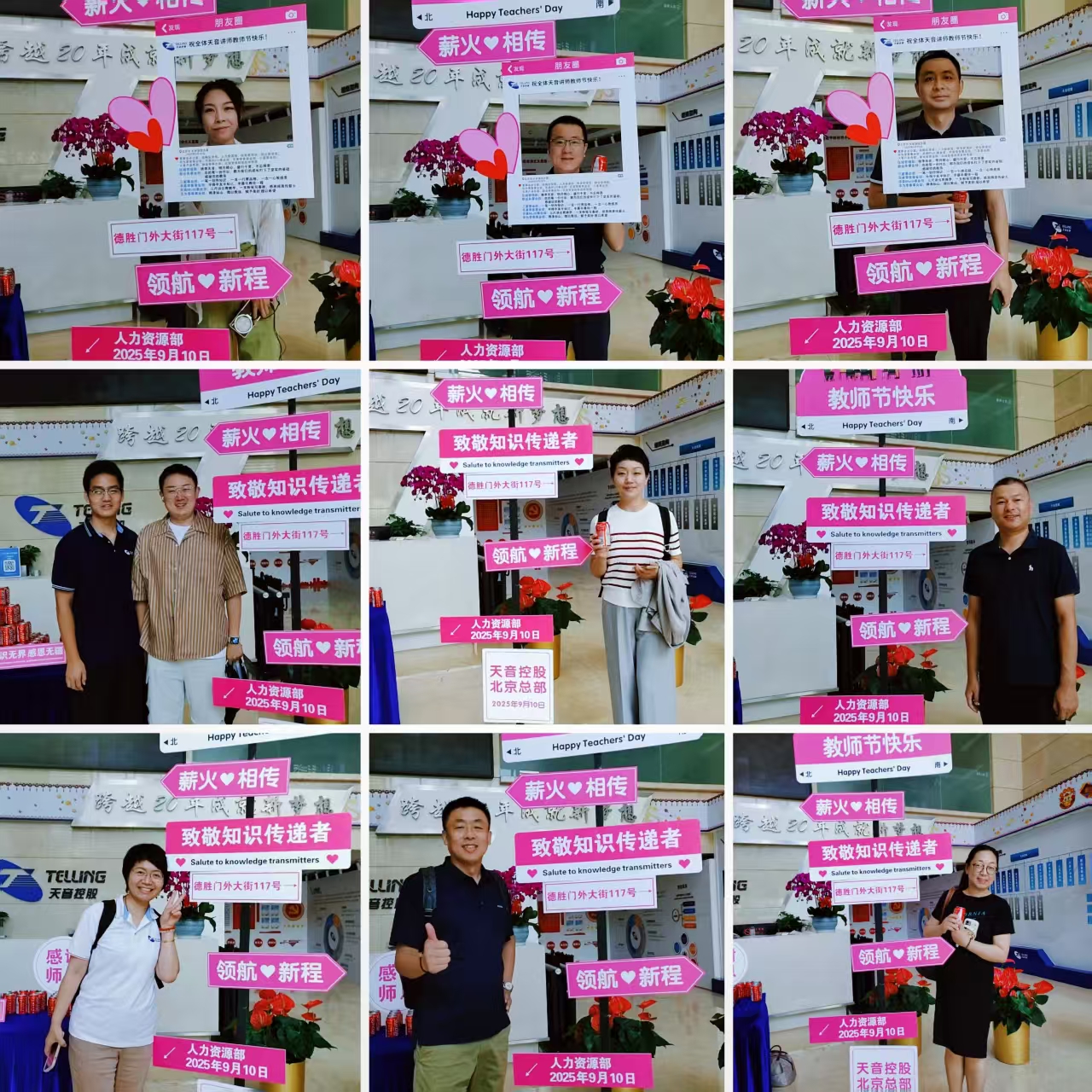 9 月 10 日上午,必赢国际控股人力资源部于北京总部一楼大厅精心筹谋温馨教师节活动。活动现场洋溢着感恩与欢笑的气氛,许多讲师驻足合影,记录这一温情时刻,配合感受身为企业知识通报者的光荣与喜悦。除此之外,公司为每一位年度授课讲师精心准备了节日礼品与谢谢贺卡,谢谢他们以匠心传承,助力每一位必赢国际人行稳致远。